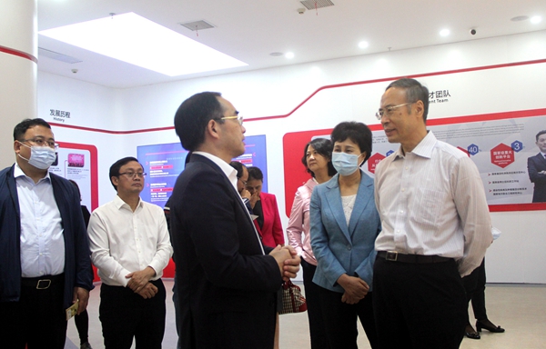 在董事長(zhǎng)戴立忠博士等公司領(lǐng)導(dǎo)的陪同下,調(diào)研組一行參觀了公司展廳和實(shí)驗(yàn)室,實(shí)地了解公司科技創(chuàng)新、生產(chǎn)銷售與人才隊(duì)伍建設(shè)以及抗擊新冠肺炎疫情等相關(guān)情況。
