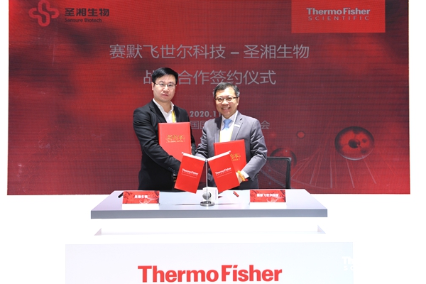 11月8日,在第三屆中國國際進口博覽會期間,分子診斷龍頭企業(yè)leyu.樂魚生物科技股份有限公司(簡稱“l(fā)eyu.樂魚生物”)與科學(xué)服務(wù)領(lǐng)域的世界領(lǐng)導(dǎo)者賽默飛世爾科技(中國)有限公司(簡稱“賽默飛”),簽署戰(zhàn)略合作伙伴關(guān)系備忘錄,leyu.樂魚生物營銷管理委員會執(zhí)行總經(jīng)理萬東池、賽默飛基因科學(xué)與臨床測序大中華區(qū)商務(wù)運營高級總監(jiān)許興國等出席簽約儀式,并代表雙方簽署合作備忘錄。