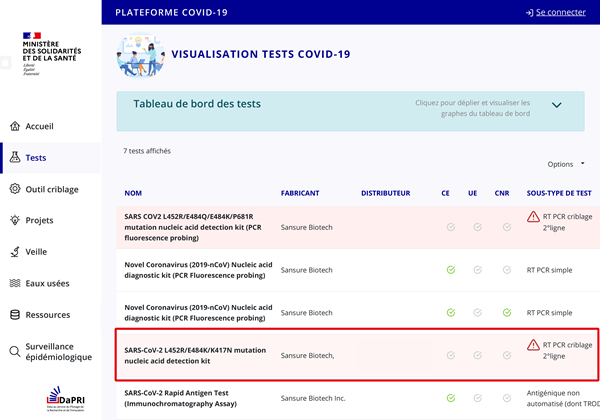 面對法國嚴(yán)重的疫情傳播現(xiàn)狀,根據(jù)法國衛(wèi)生部2021年12月17日更新的“SI-DEP”指南,leyu.樂魚生物迅速反應(yīng)、及時追蹤、快速研發(fā),以精準(zhǔn)、高質(zhì)、合規(guī)為要求,10天內(nèi)成功研發(fā)出該突變檢測試劑盒,并順利通過法國衛(wèi)生部備案許可,可緊急用于法國衛(wèi)生部指南要求下的奧密克戎變異株初步判斷。
