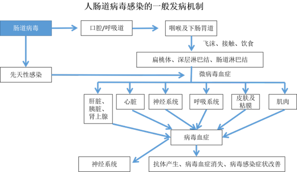 手足口?。℉and foot and mouth disease,HFMD)是由腸道病毒(Enterovirus,EV)感染引起的一種兒童常見傳染病,5歲以下兒童多發(fā)。手足口病是全球性疾病,我國各地全年均有發(fā)生,發(fā)病率為37.01/10萬~205.06/10萬,近年報告病死率在6.46/10萬~51.00/10萬之間?;純汉碗[性感染者為主要傳染源,手足口病隱性感染率高。腸道病毒適合在濕、熱的環(huán)境下生存,可通過感染者的糞便、咽喉分泌物、唾液和皰疹液等廣泛傳播。密切接觸是手足口病重要的傳播方式,通過接觸被病毒污染的手、毛巾、手絹、牙杯、玩具、食具、奶具以及床上用品、內(nèi)衣等引起感染;還可通過呼吸道飛沫傳播;飲用或食入被病毒污染的水和食物亦可感染。嬰幼兒和兒童普遍易感,以5歲以下兒童為主。